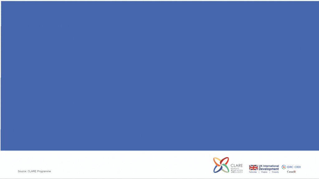 Dans l’ensemble du portefeuille CLARE, nos projets s’emploient activement à synthétiser les données factuelles qui façonnent les politiques et les pratiques d’adaptation en Afrique, en Asie-Pacifique et au-delà.