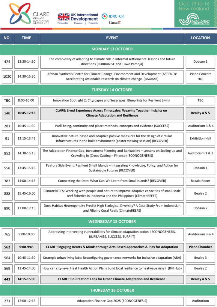 Those attending Adaptation Futures in person are invited to visit the CLARE booth (Stand #14) in the exhibition hall to connect with the CLARE community and discover highlights from across the programme.