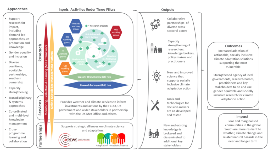 The CLARE programme intends to generate impact through a coordinated portfolio of programmes and projects. As a whole, it includes three pillars which collectively work towards common outputs, outcomes and impact:
