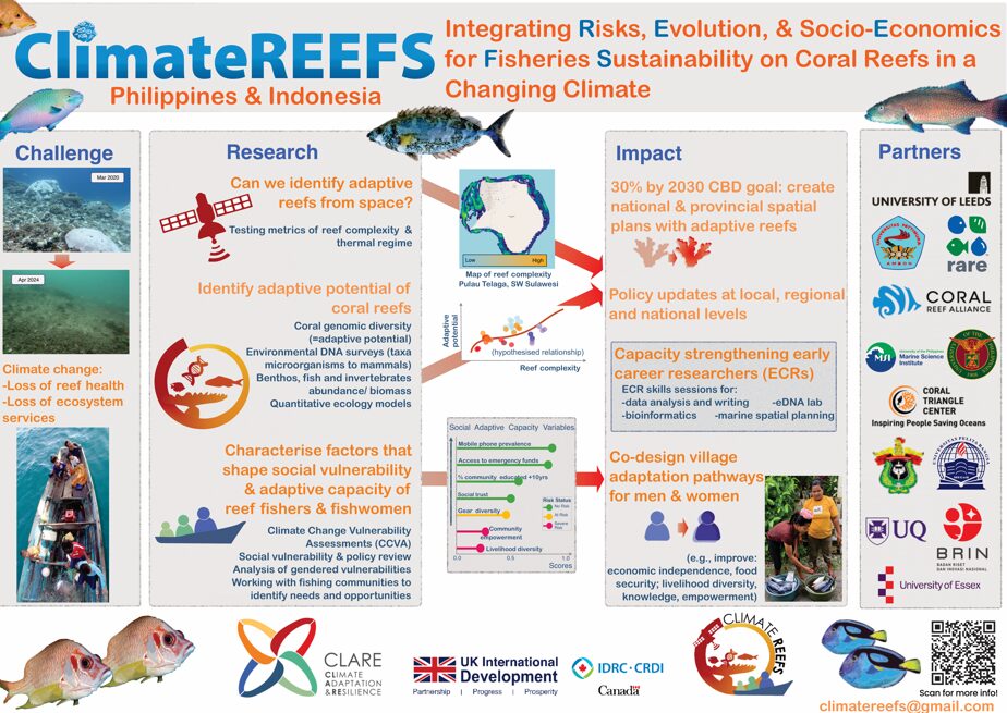 Accelerating women’s leadership in climate action (AWARD), Behavioural adaptation for water security and inclusion (BASIN), Building Insurance Mechanisms Adaptation (BIMA), Building women smallholder farmers’ adaptive capacities in Uganda (WOSFER), CLARE Capacity Strengthening Hub, CLARE-ASEAN, Climate adaptation and resilience in tropical drylands (CLARITY), Decision Support for Climate Risk Preparedness towards Gender-Responsive Crop Insurance in West Africa (GRIN), Designing inclusive African coastal cities’ resilience (INACCT Resilience), Enhancing inclusive Global South participation in the Intergovernmental Panel on Climate Change Special Report on Climate Change and Cities, Fisheries sustainability on coral reefs (ClimateREEFS), Gender equality and inclusion: Distribution and costs of adaptation (ECONOGENESIS), Improved anticipation of floods on the White Nile (INFLOW), Innovative facilitation for resilience: Transforming complex dialogue for adaptation (fellowships), Methods to enhance capability in high-resolution information for adaptation: Initial case studies (MECHANICS), Pan-African and transdisciplinary lens on the margins: Tackling the risks of extreme events (PALM-TREES), Resilience building through multi-stakeholder engagement in anticipatory action for climate-induced disaster (REBUMAA), Resilience of informal communities in rapid urbanization (RURBANISE), Resilience to climate vulnerability and environmental risk (RECOVER) focus on small islands, Spatial surge forecasting using artificial intelligence and community knowledge (SURF-IT), Strengthening pastoralist livelihoods through effective anticipatory action (PASSAGE), Successful intervention pathways for migration as adaptation (SUCCESS), The Tuwe Pamoja project ("Let's be together" for equitable urban nature-based solutions for climate change adaptation), Understanding African universities' capacity for climate adaptation research: Piloting a climate-focused organizational capacity assessment tool (CO-CAT), Where the sea meets the land: Coastal heritage, community resilience and inclusion in a changing landscape (CoHeRe)