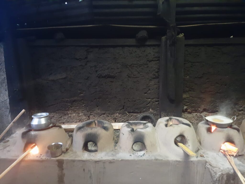 Chulha or earthen hearths in Perumbavoor where women cook food. The fire is fed with spare wood from the plywood factories. Credit: Ambuja Raj, IIHS.