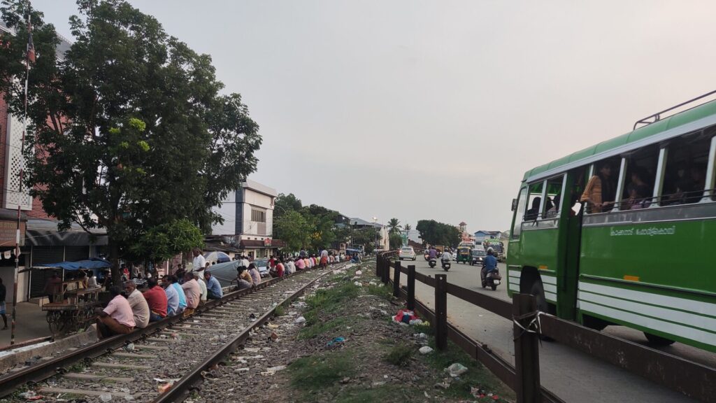 Railway track lining the Vathuruthy settlement, occupied mostly by men. Credit: Chandni Singh, IIHS